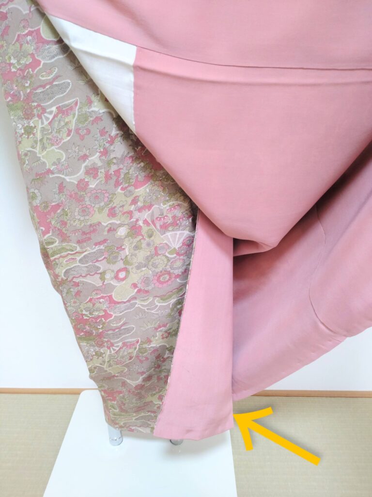 上前(うわまえ)と呼ばれる一番外側の着物をペラッと捲ってみてください。